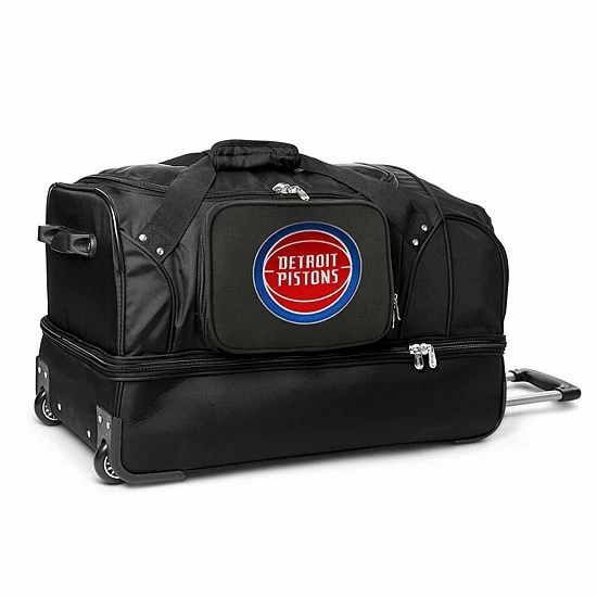 This Detroit Pistons wheeled duffel bag offers spacious storage, whether you’re taking a trip or tailgating out of town.