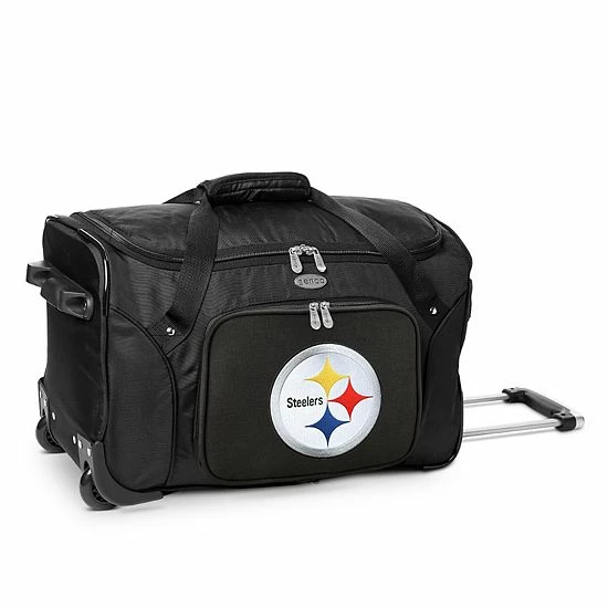 Travel like a champ with this spacious and portable Pittsburgh Steelers wheeled duffel bag from Denco.