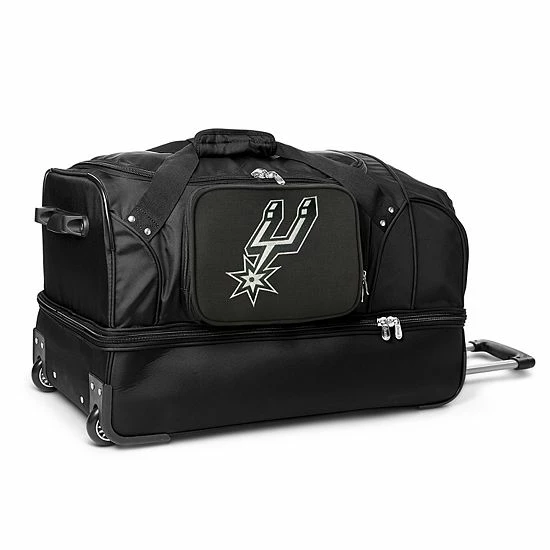 This San Antonio Spurs wheeled duffel bag offers spacious storage, whether you’re taking a trip or tailgating out of town.